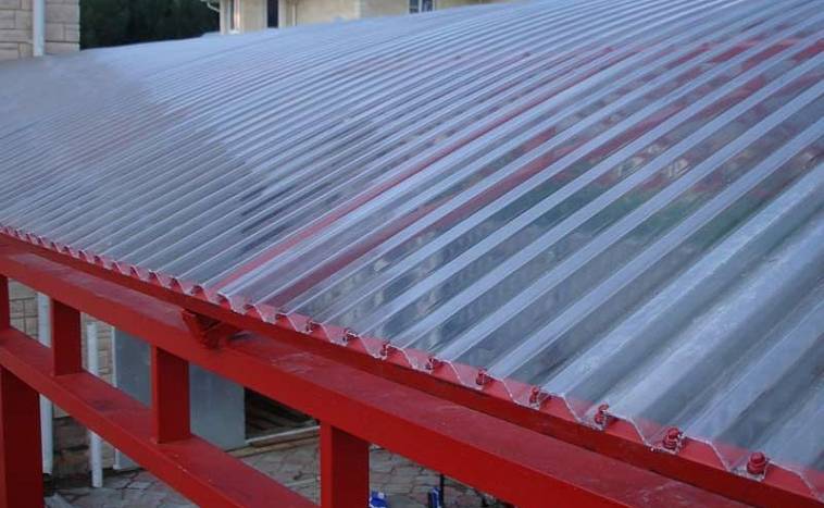 - Lors de l'installation de polycarbonate rouge, jaune ou vert, il convient de considérer que tous les objets sous un tel toit acquerront la teinte appropriée.