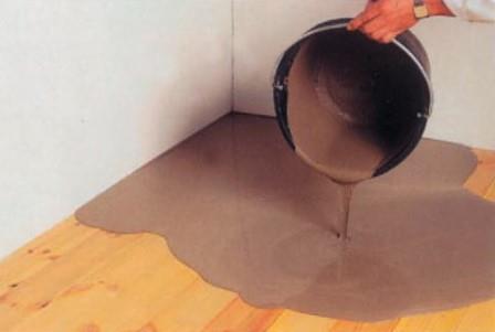 - Chape. La décision de couler le mortier sur le sol est prise lorsque celui-ci s'affaisse tellement qu'il ne reste plus qu'à arracher les planches, les bûches et à procéder à une révision complète. C'est long, coûteux, il est plus facile de résoudre le problème localement - pour remplir l'endroit plié avec un mélange de gypse ou de polymère. Tout d'abord, vous devez boucher les fissures et nettoyer le revêtement de la saleté.
