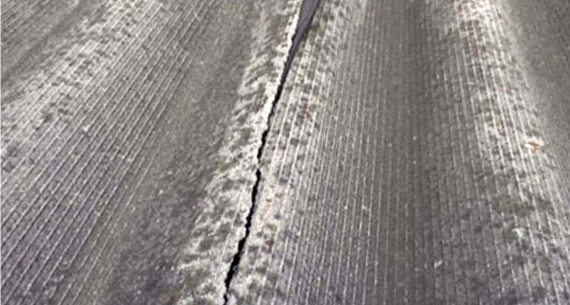 - Du ruban adhésif double face est appliqué sur toute la longueur de la fissure.