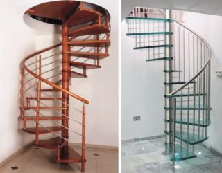 La matière première la plus appropriée pour les escaliers est l'acier inoxydable épais. D'autres types de métaux sont également utilisés, mais ils présentent des inconvénients : la fonte est lourde et l'acier chromé ne dure pas si longtemps, bien qu'il ait une texture expressive. Parfois, la surface est finie comme du marbre en utilisant une composition de poudre spéciale.