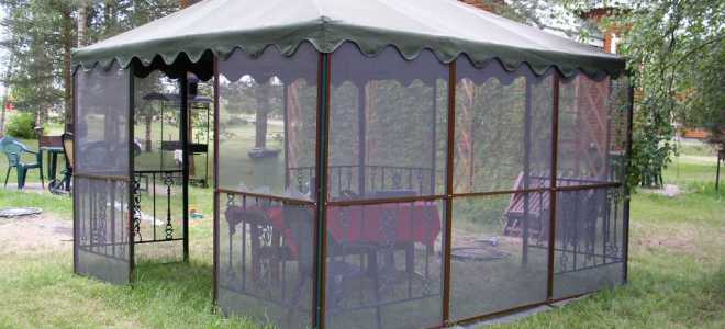 Selon la conception du gazebo, les ouvertures ouvertes sont fermées avec un filet ou la structure est enroulée autour du périmètre. Comme la charge du vent n'agira que sur la pince, il suffit de clouer le filet avec des agrafes. Si vous envisagez de le retirer et de le réutiliser, il est préférable d'utiliser des lattes en plastique ou en bois.