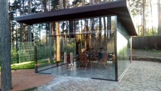 La fermeture de l'intérieur du gazebo avec des matériaux transparents vous permet de vous cacher du froid et du vent, tout en observant le paysage environnant dans une atmosphère de confort maximum.