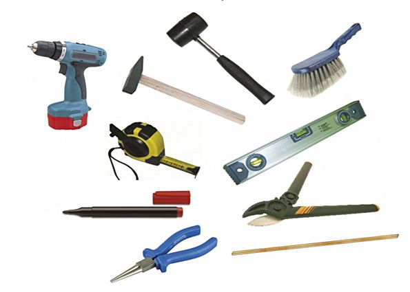 - quincaillerie (clous, vis, coins).