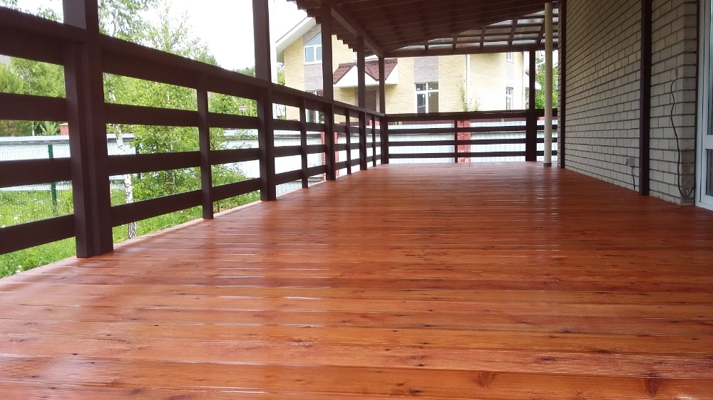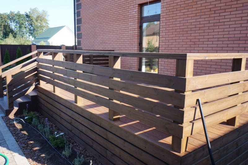 Les clôtures d'une terrasse ou d'une véranda en bois sont solides, durables, fiables. Cependant, le matériau est assez sensible à l'action de l'eau, de la chaleur et du froid, il a donc besoin de protection.Le bois est recouvert de peinture ou de vernis, imprégné de cire ou de teintures. Les modèles en bois dur - mélèze, chêne - n'ont pas besoin de protection.