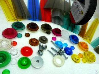 - Type - seule la version avec laveur thermique convient. Il se compose d'un couvercle, d'un joint torique et d'un pied.Grâce au rembourrage en matériau élastique, la rondelle thermique offre une fixation serrée mais non rigide. Lorsque la température change de 12-15 C, le polycarbonate augmente de volume de 1 mm pour 1 m². m. Si cette caractéristique est ignorée, les feuilles se fissurent et s'effritent en été.
