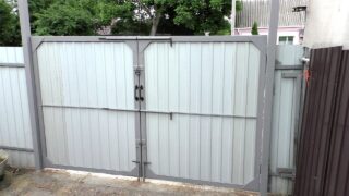 - Matériel - par exemple, une tôle ondulée ou une palissade, pèse peu. Cependant, la première option limite la longueur du vantail, car le vantail de la porte aveugle a un vent élevé. Les châssis pleins ou forgés sont beaucoup plus solides, mais aussi plus lourds.