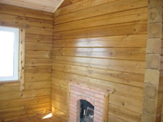 - Les nœuds tombés, les fissures, les lacunes sont remplis de mélanges de plâtre avec de la sciure de bois. Après séchage, les zones sont nivelées avec du papier de verre.
