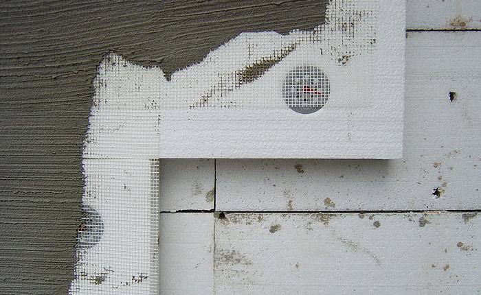 Isolant moderne des murs extérieurs, le polystyrène est monté à l'aide de mortier-colle et de chevilles à disque. Les travaux se déroulent en plusieurs étapes :