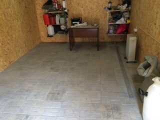 Carreaux techniques industriels d'occasion à haut degré de résistance à l'usure classe classV-V. En l'absence de chauffage dans la pièce, un matériau résistant au gel doit être choisi. Pour une adhérence optimale, le sous-plancher d'un garage métallique est apprêté.