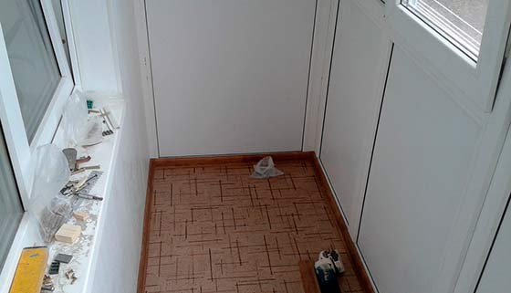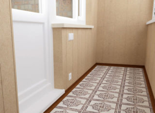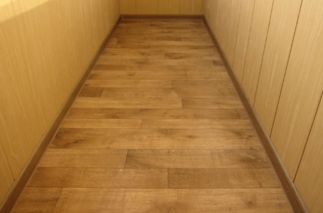 Si cette pièce de l'appartement est destinée à être utilisée pour ranger les devoirs et autres choses, la finition du sol du balcon doit être sans prétention. Cela n'a aucun sens d'utiliser des matériaux raffinés qui demandent un entretien, mais la capacité du revêtement à résister à des charges statiques et dynamiques élevées est d'une importance particulière.