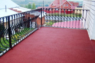 Compositions colorantes pour un balcon ouvert, ils sont faciles à appliquer, ils servent longtemps sans perdre de couleur, ils n'ont aucune restriction sur les méthodes de nettoyage, mais le sol dans ce cas sera froid. Cela vaut la peine de sortir avec des chaussures, sinon il y a un risque d'avoir froid aux pieds.