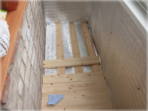 En raison de la fantaisie des conditions extérieures, le stratifié est monté uniquement sur des balcons vitrés, isolant ainsi. Il peut être en polystyrène expansé ou en liège. En plus de sa fonction directe, l'isolation permet de niveler le sol et d'améliorer l'isolation phonique.