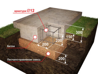 - Renforcez la fondation avec un treillis en acier constitué de barres d'une section de 3 mm.Couler du béton.