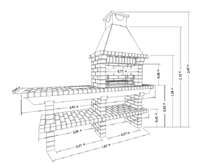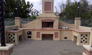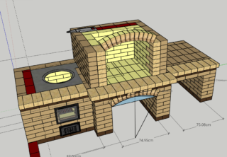 L'option plaque de cuisson devrait être plus étendue. Ici, vous devrez construire une chambre de combustion et de cendres à part entière. Par conséquent, pour la construction, vous devez avoir une certaine expérience. Dimensions recommandées 143 * 173 cm avec une hauteur de 190 cm.