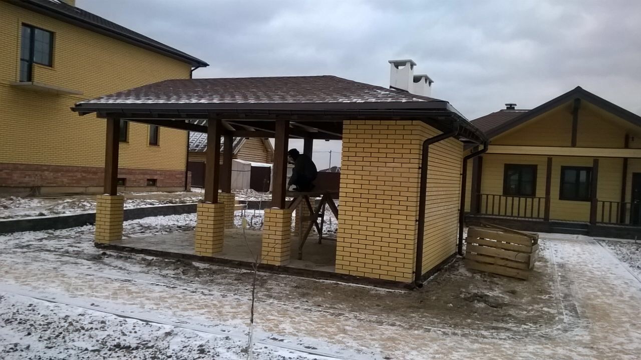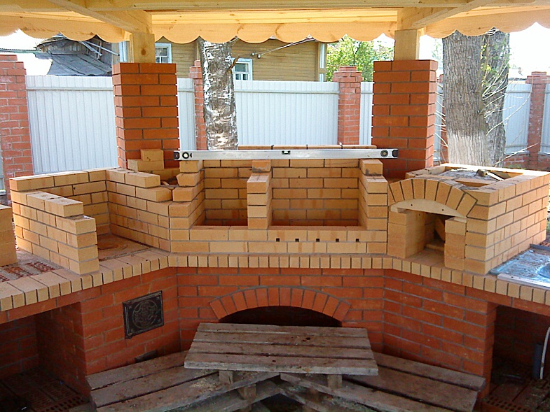 - Construction par étapes - si seulement un four est fait de briques, une structure en pierre est d'abord construite, puis un cadre en bois du belvédère est érigé. Si toute la structure est en briques, la construction est réalisée en parallèle.
