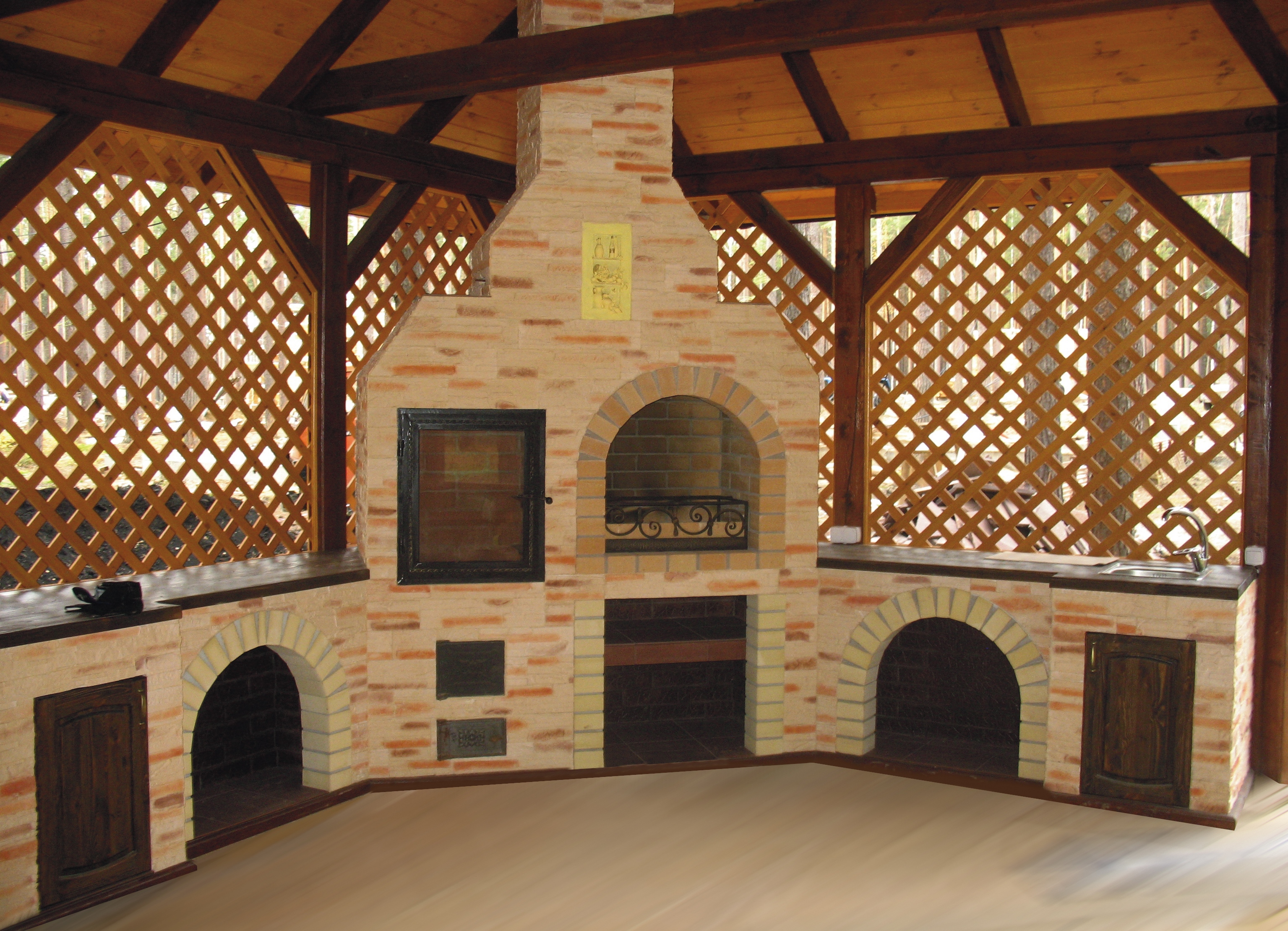 - Le four gazebo est exposé à des variations de température très élevées. Lors du choix des matériaux de construction, tenez compte non seulement de la résistance à la chaleur, mais également de la résistance au gel.