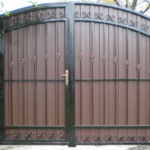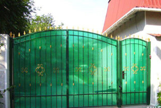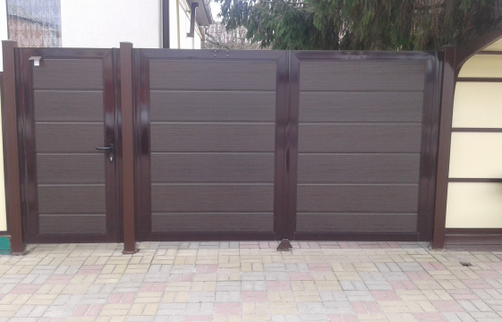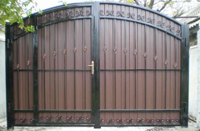 - Portails battants avec porte intégrée, mais en haut ils forment une traverse horizontale pour augmenter la rigidité. Dans une structure d'une largeur de 4 mètres, les transports et les personnes transitent.