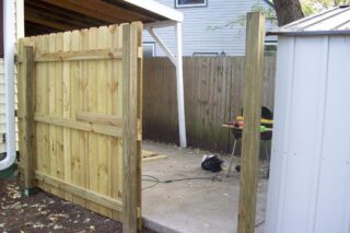 Il existe des options combinées lorsque la clôture est en bois et que le bois est utilisé pour remplir le châssis, mais les supports pour suspendre le châssis sont en métal. Ceux-ci peuvent être des tuyaux installés dans le sol et bétonnés si le sol n'est pas sujet au soulèvement.