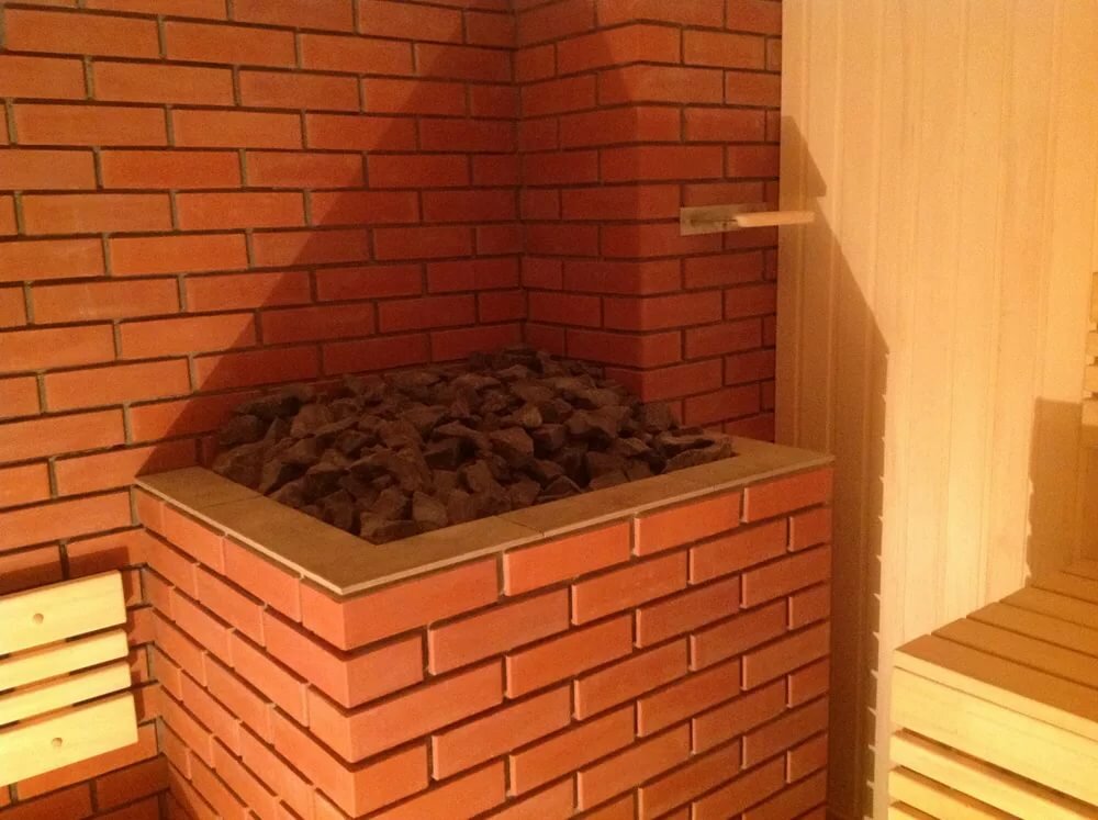 - Le corps en brique ne remplace pas les pierres à vapeur. Il est important non seulement d'évaporer l'eau, mais de la pulvériser d'abord en très petites particules. Cela nécessite des pierres plates, et avec une surface spéciale.