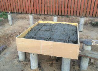 - Le coffrage est construit, renforcé et coulé avec du béton. L'épaisseur de la dalle est d'au moins 20 cm.
