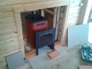 La base d'un poêle-cheminée en brique