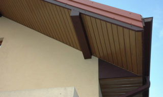 Une construction plus légère est obtenue en enlevant uniquement la caisse. Une telle corniche ne dépasse pas 50-60 cm, elle est gainée d'un matériau léger, comme des carreaux de métal, de l'onduline, des carreaux souples. Le porte-à-faux avant fait presque toujours référence à fermé et est ourlé de planches, de planches à clin.