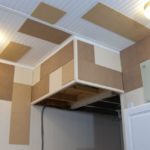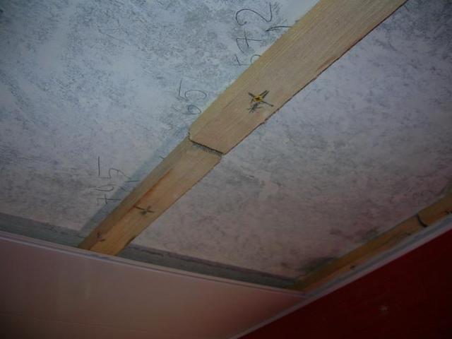 L'installation sur une telle caisse convient à une maison privée. Dans les appartements urbains, la hauteur sous plafond est généralement faible, la création d'une structure articulée la réduira encore plus, ce qui peut être gênant pour les résidents. Une caisse est constituée de lattes soigneusement séchées d'une épaisseur minimale de 3 à 4 cm.Si vous les rendez plus minces, il existe une forte probabilité de fissuration lorsque vous travaillez avec des attaches. Le revêtement est réalisé parallèlement au mur, dont la longueur ne dépasse pas la taille du rail ou d'une autre unité de matériau. Vous pouvez fixer les planches au plafond en bois avec de simples vis autotaraudeuses. Lorsque vous travaillez avec une dalle de sol, il est nécessaire de percer des trous à l'avance, d'installer une cheville en plastique à l'intérieur et de fixer la bande à l'aide de vis autotaraudeuses. La profondeur de leur vissage doit être d'au moins 5 cm.