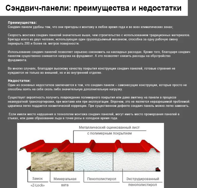 - Panneaux d'assemblage de fonctionnalités. Ils diffèrent par les plus grandes dimensions, ils sont donc livrés à l'objet en parties. Le montage se fait sur place. La cassette est progressivement remplie d'adhésif, d'isolant, d'imperméabilisation et d'une bande d'acier externe. Certaines options peuvent être peintes sur place, si tel est le souhait du propriétaire.