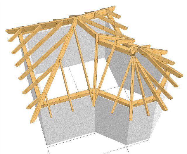 - Hanche. Pour les dépendances sur le mur, trois pentes sont plus souvent utilisées. Convient pour les baies vitrées rectangulaires et multi-facettes.