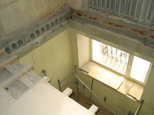 - Si l'escalier est installé à l'intérieur d'un bâtiment, vous devrez préparer une ouverture pour accéder au niveau supérieur. Le chevauchement est pré-renforcé avec des accessoires, puis un trou de la longueur appropriée y est pratiqué. Ses bords sont équipés de coins en acier.