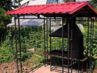 Le gril fait maison avec un toit est composé uniquement de métal. Le polycarbonate, l'ardoise, les tuiles ne peuvent pas être utilisés. La tâche principale du toit est de protéger le brasier de la pluie et du vent, mais il conduit la chaleur dans une certaine mesure.