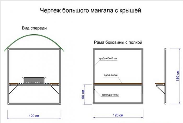 La préparation à la fabrication d'un brasero avec un toit de vos propres mains se résume aux calculs, à l'élaboration d'un dessin et au choix du matériau.