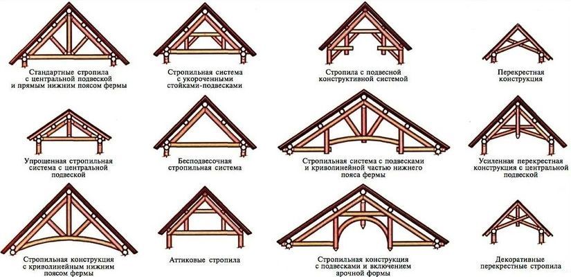 Les systèmes de chevrons sont divisés en couches et suspendus. Dans le premier cas, les poutres de chevrons sont supportées par des poutres verticales. L'option est applicable dans les maisons avec des cloisons principales sur lesquelles les crémaillères sont supportées.Le type incliné est le mieux adapté pour les toits en pente. Les chevrons suspendus ne sont soutenus que sur les murs extérieurs solides. Cette option convient aux toits à deux versants.