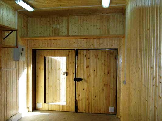- À l'intérieur, le garage est souvent cousu avec des planches à clin.Les lamelles en bois légères créent une atmosphère agréable, n'émettent pas de substances toxiques et sont très belles. Cependant, la doublure doit être soignée : au moins une fois par an, la finition est traitée avec des solutions antiseptiques, vernie.