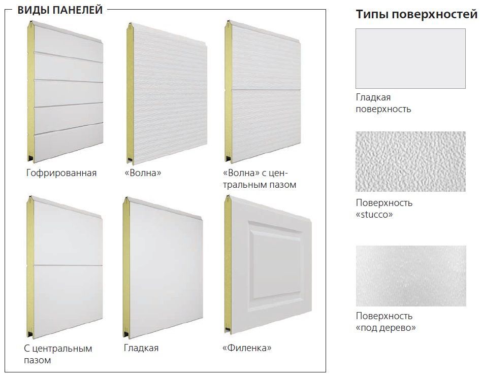 La toile se déplace le long des profils de guidage fixés aux bords de l'ouverture. Les portes sont constituées de panneaux sandwich d'une épaisseur de 40 à 60 mm. Les dalles sont remplies de mousse de polyuréthane, qui est encadrée des deux côtés avec des tôles d'acier peintes.