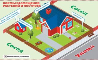Entre les bains publics et la route qui longe la rue, un écart de 5 m est prévu.Sur les parcelles de jardin, une grande attention est accordée aux arbustes et arbres verts. La proximité des plantations avec un système de drainage ou d'assainissement est dangereuse pour eux.