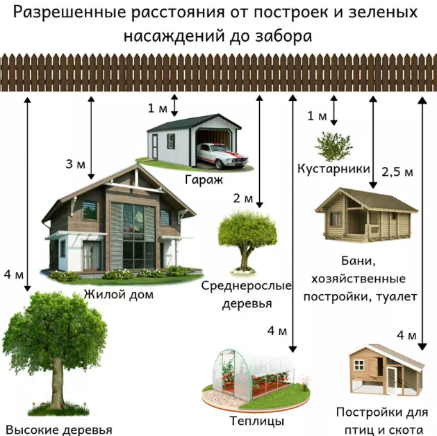 Pour le calcul de l'écart, le plan extérieur du mur de l'une et l'autre structure ou le centre de l'axe de la clôture est pris. L'emplacement prend également en compte le dispositif d'un drain organisé du toit de la baignoire. Le système de drainage avec gouttières est placé de manière à ce que l'eau du toit ne tombe pas sur la parcelle voisine.