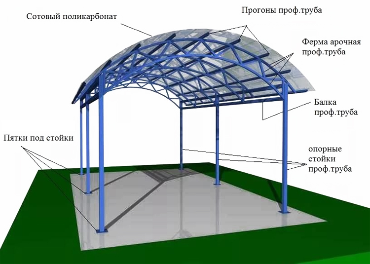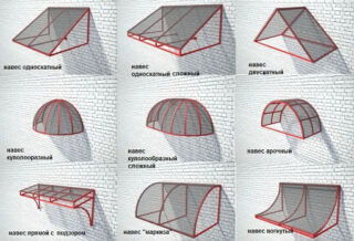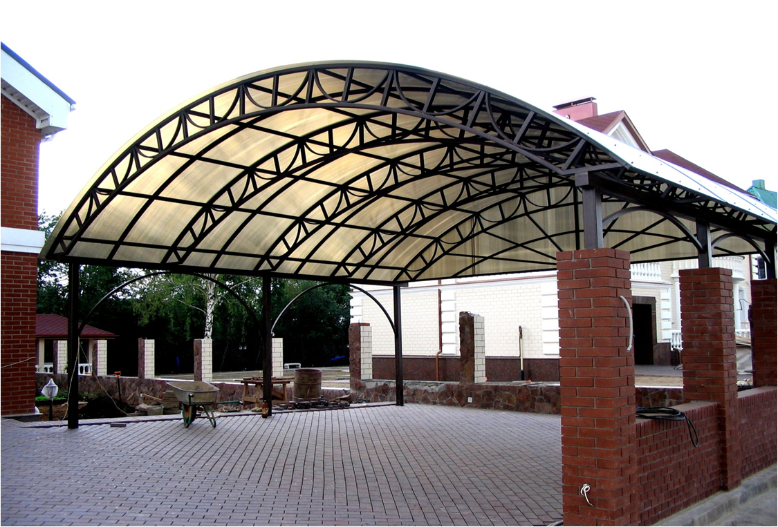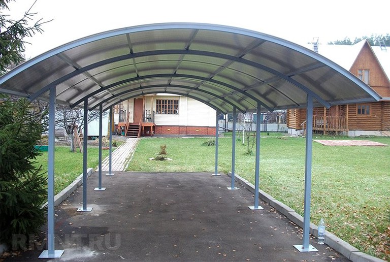 - Arqué. La solution la plus populaire et idéale pour les auvents simples et combinés. Le toit allie praticité et attrait.