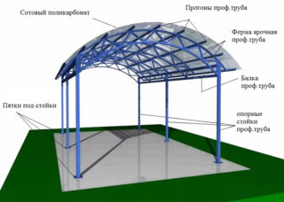 Les auvents en polycarbonate dans la cour ont fière allure. La conception des structures est largement déterminée par le choix du matériau de la toiture.
