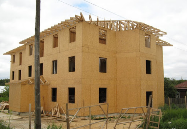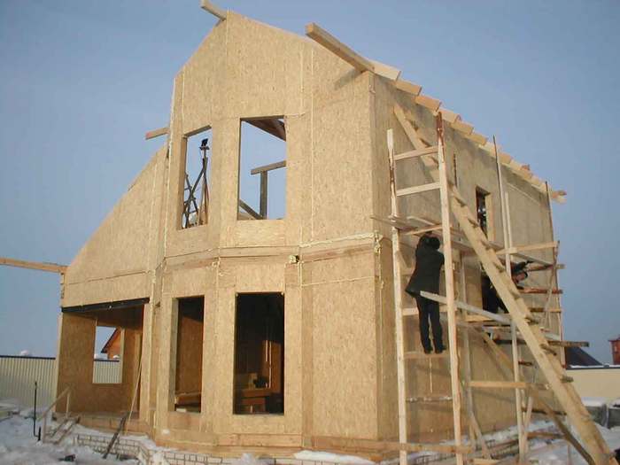 - Installation de panneaux OSB à partir de la façade, de plaques de plâtre ou de plaques de contreplaqué de l'intérieur.