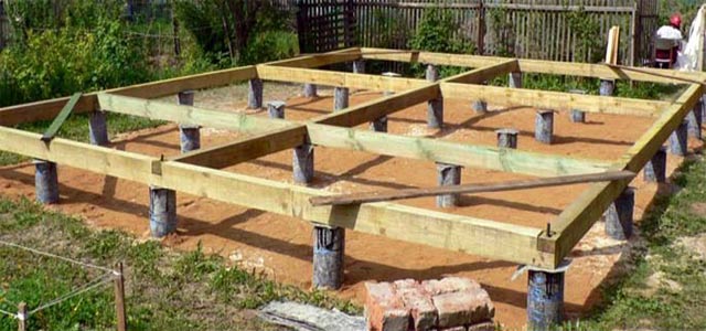 - Fondation. Étant donné que les structures sont légères, des colonnes légères, des pieux, des bases en bandes sont généralement fabriquées pour elles ou une dalle d'une épaisseur de 100 à 150 mm est coulée.