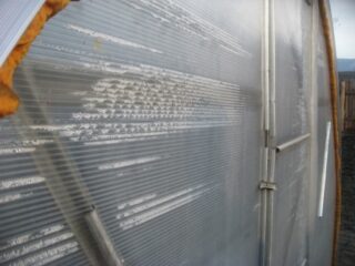 Il est conseillé de fermer les serres dans les régions du nord du pays. Dans ces zones, des rafales de vent importantes, associées au gel hivernal, arrachent les feuilles de polycarbonate et le film se déchire.