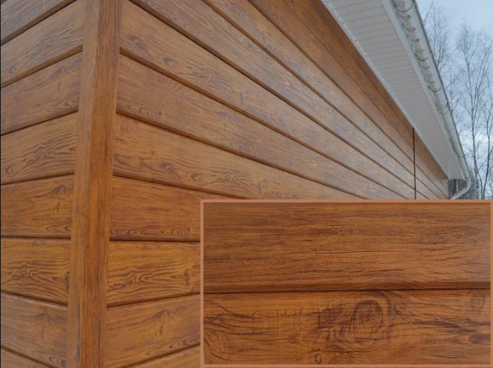 Le matériau de revêtement est produit sous la forme de longs panneaux à surface ondulée qui, une fois assemblés, forment un revêtement uniforme. Les bandes avec des bandes de fixation le long des bords sont fabriquées par estampage, qui imite la texture sélectionnée, les bûches, les planches, les pierres, les briques.