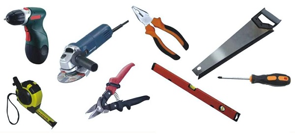 - tournevis, marteau, pinces, couteau, poinçon.