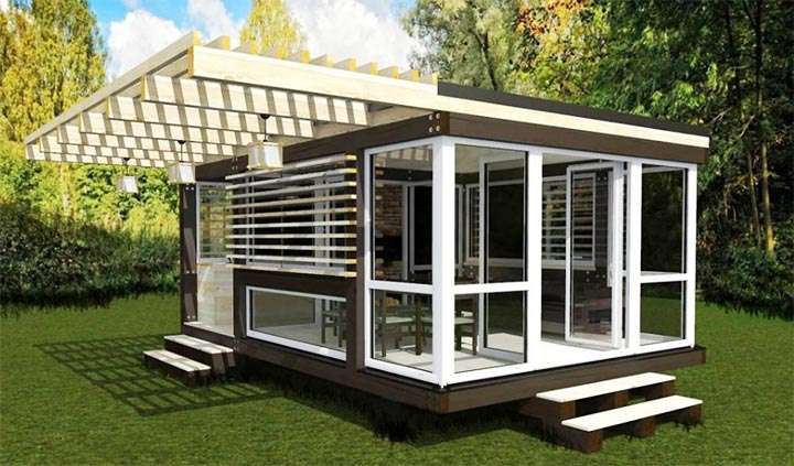 - La conception fermée ressemble à une cuisine d'été en apparence. Il est recommandé d'ériger la structure à partir de fenêtres en métal et à double vitrage.