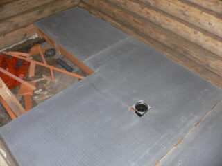 Les panneaux sont posés sur un lit de gravier, argile expansée. En deux couches avec des coutures alternées, les feuilles sont montées si elles disposent des poutres et des bûches comme base.