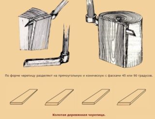 - Shindel - les soi-disant planches qui sont ébréchées du pont sans violer l'intégrité des fibres. Par rapport aux bardeaux, ils ont une épaisseur légèrement supérieure et un pourcentage d'humidité plus faible. Posez-le de la même manière. Dans les produits de qualité, les cernes annuels sont situés à un angle de 30 degrés.