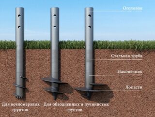 Pour une installation correcte des piliers, vous devez choisir la meilleure option pour les fixer dans le sol. Il est recommandé de prendre en compte la composition du sol. Pour les sols sableux et denses, les éléments porteurs doivent être bétonnés. Les racks sont vissés dans les puits préparés ou ils utilisent la méthode d'entraînement.