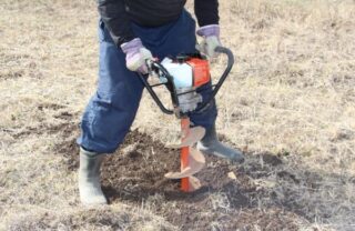 - Préparez une fosse de fondation de 15-20 cm à l'aide d'une perceuse à main ou électrique. Faites un renfoncement de 0,7 à 1,5 mètre. Le paramètre exact dépend de la composition du sol et de la hauteur de la clôture. Plus la clôture est haute, plus la fosse est profonde.