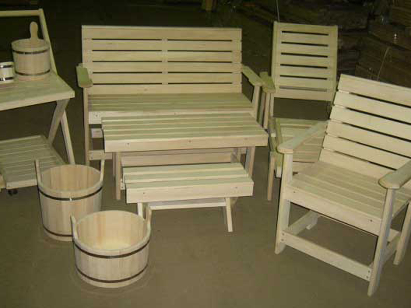 Cette catégorie comprend les étagères, les baignoires, les éviers en bois, ainsi que tous les autres meubles du dressing et de la salle de repos : chaises, canapés, tables, bancs. Les exigences pour eux sont quelque peu différentes.